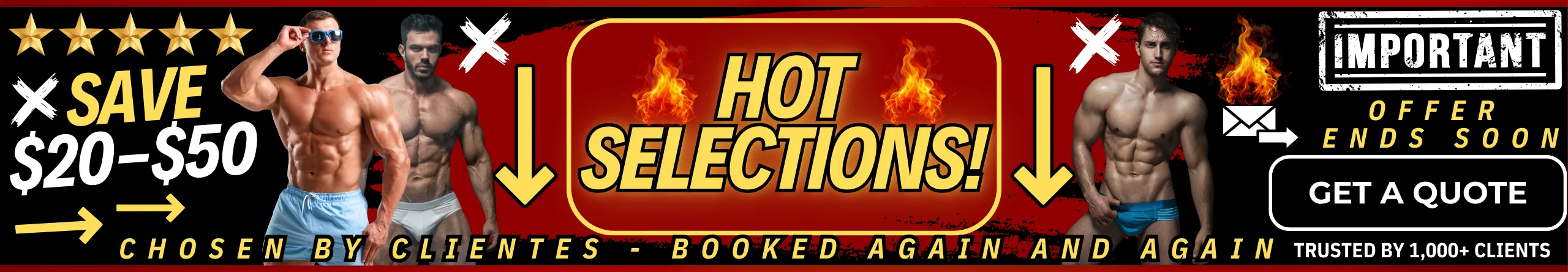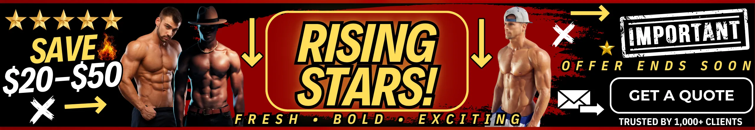 Looking to hire professional male strippers for your next celebration? Our elite male entertainers are available for bachelorette parties, despedidas de soltera, ladies’ nights, girls’ night out, birthday parties, divorce parties, LGBTQ+ events, and private parties nationwide. We also offer upscale party services including male butlers, cabana boys, shirtless bartenders, and sip & paint male models, all carefully selected for their looks, personality, and professionalism. Whether you’re booking one entertainer or a full male revue experience, we make it easy to find the best male entertainers near you for a fun, stylish, and unforgettable event.